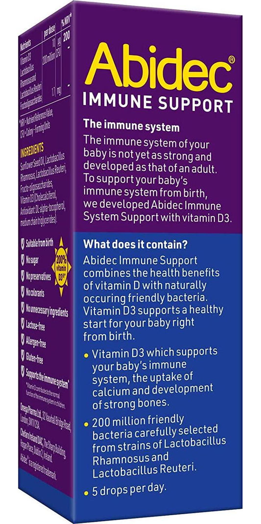 Abidec Immune Support – 2 in 1 Drops - Vitamin D + Millions of Friendly Bacteria – For Babies from Birth to 3 Years - 1 Month’s Supply