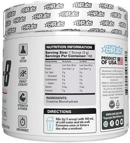 EHPLabs CREA-8 Creatine Monohydrate (500g) Builds Lean Muscle Mass, Improves Strength and Power, Speeds Up Recovery Times - 100 Servings