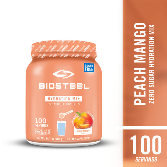 Biosteel Zero Sugar Hydration Mix, Great Tasting Hydration with 5 Essential Electrolytes, Peach Mango, 100 Servings