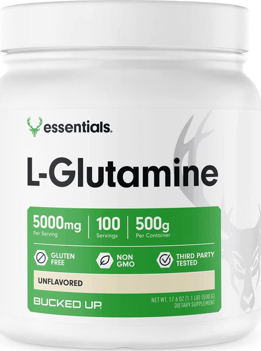 Bucked Up L-Glutamine 500g Powder, Bucked Up Essentials (100 Servings)