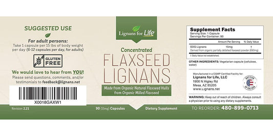 Flaxseed Lignans - 15 mg Organic Flaxseed for Dogs - 90ct 15mg Capsules - Lignans for Life