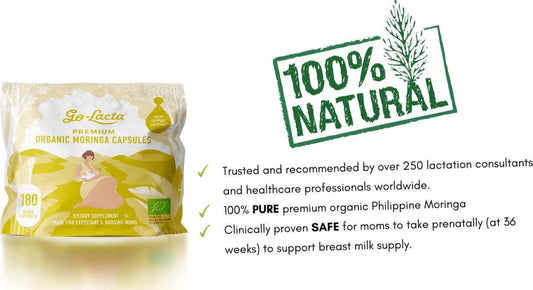 Go–Lacta 100% Organic Moringa Capsules for Breastfeeding Moms, 180 Capsules