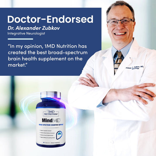 1MD Nutrition Mindmd - Brain Supplement for Memory and Focus - Bacopa Monnieri for Nootropic Brain Support - Brain Health Supplement for Adults - with Vitamin B6 & Green Tea Extract - 60 Caps