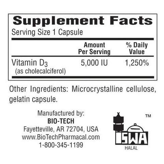 Bio-Tech Pharmacal Vitamin D3-5 Capsules, 5000 IU, 250 Ct