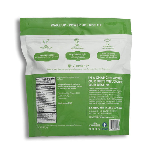 Chapul Cricket Protein Powder (Pure, 1 Pound) 100% Cricket Flour, 25g Protein per Serving, High in Prebiotic Fiber, Sugar Free, 0 Net Carbs, Keto-Friendly
