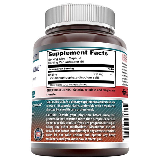 Amazing Formulas Uridine Dietary Supplement 300 Milligrams 50 Capsules (Non-Gmo, Gluten Free) - Supports Cognitive Functions - Encourages Synthesis of RNA (1) Promotes Liver Health