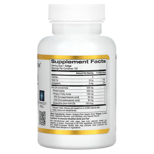 Antarctic Krill Oil, Ultra-High Omega-3 with Astaxanthin, Natural Strawberry & Lemon Flavor, Non GMO, Gluten Free, 500 Mg, 120 Fish Gelatin Softgels
