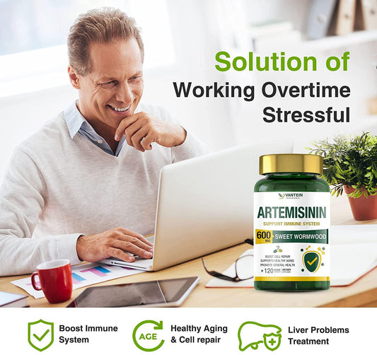 2 Pack Artemisinin 600mg, 120 Vegan Sweet Wormwood Extract Capsules Support Healthy Aging, Improve Immune Function Digestive Promote Cell Repair, Non-GMO
