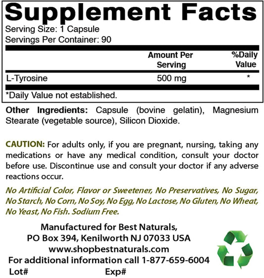 Best Naturals L-Tyrosine 500 Mg 90 Capsules