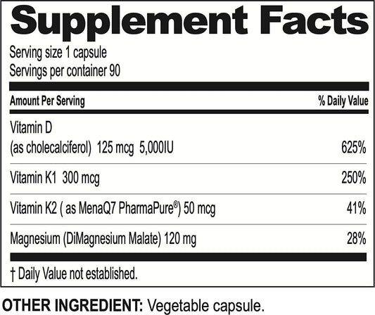 Brain Basics Opti D3 Plus | Vitamin D3 5,000IU, Vitamin K1 and K2, and Magnesium | 90 Servings