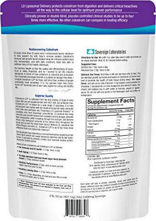 Colostrum-LD Liposomal Delivery - Colostrum Powder - Gluten-Free, Lactose-Reduced - 90 Servings - Sovereign Laboratories - 32oz Vanilla