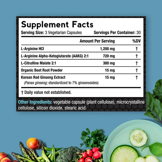 Extra Strength L-Arginine Supplement - 3X Strength Nitric Oxide Booster Supports Muscle Growth - with Citrulline Malate, AAKG, Beta Alanine for Strength and Energy to Train Harder - 60 Capsules
