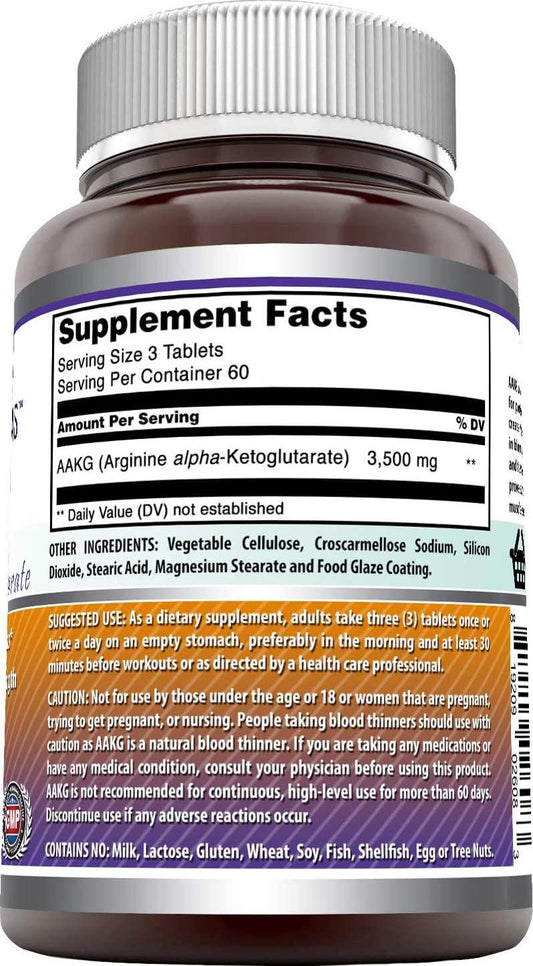 Amazing Formulas AAKG Arginine Alpha-Ketoglutarate 3500 Mg Per Serving, 180 Tablets (Non-GMO) -Supports Synthesis of Proteins* -Supports Lean Muscle Mass, Strength Gain and Endurance*
