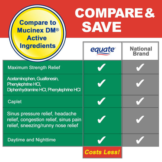 Equate Maximum Strength Day & Night Sinus Relief Caplets, 20 Count