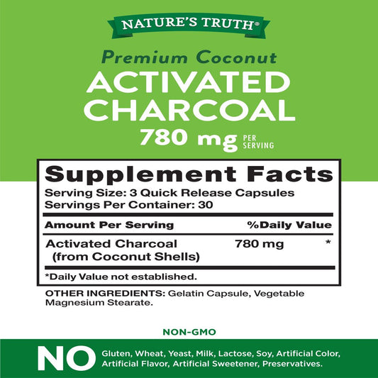 Activated Charcoal Capsules 780Mg | 90 Count | Non-Gmo, Gluten Free Pills | by Nature'S Truth
