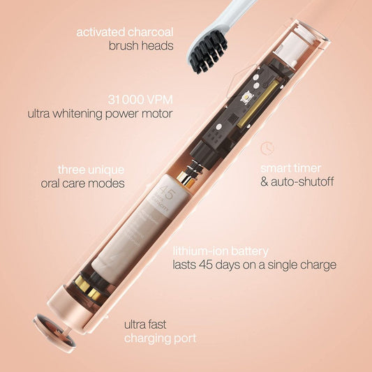 Aquasonic Pulse - Ultra SR25 Whitening Electric Toothbrush W Activated Charcoal Whitening Bristles - Sonic Rechargeable Toothbrush - 3 Modes & Smart Timers - Lasts 45 Days - Home & Travel Toothbrush