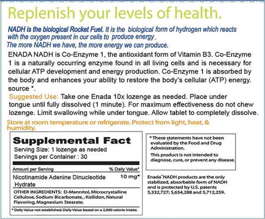 ENADA 10X NADH Supplement with Fast Acting Formula for Active Lifestyle | Natural Energy Booster Great for Jet Lag, Athletic Performance and Studying | Improves Stamina and Mental Clarity | 30 Lozenge