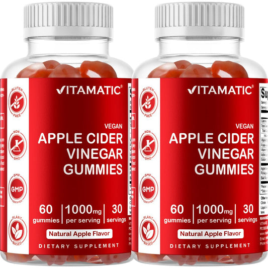 2 Pack - Vitamatic Apple Cider Vinegar Gummies - 1000Mg per Serving - 60 Vegan Gummies - ACV Gummies for Detox, Weight Loss Support, Energy Boost, Digestion & Gut Health (Total 120 Count)