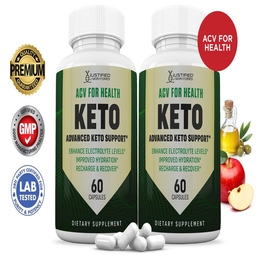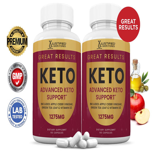 (2 Pack) Justified Laboratories Great Results Keto ACV Pills 1275Mg Dietary Supplement 120 Capsules