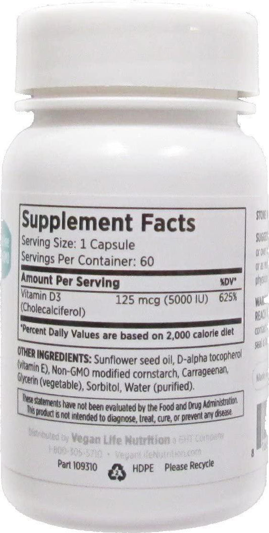 GHT Vegan Life Vitamin D3-5000 IU - 60 Softgel Capsules