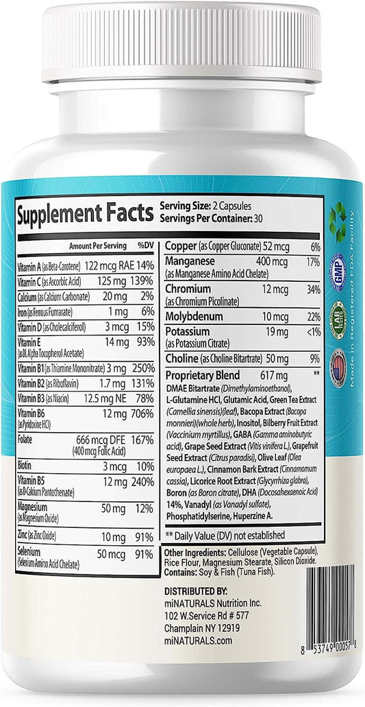 Brain Memory Supplement | Advanced Formula for Seniors | Caffein Free Pills | Capsules with Vitamins and Bacopa Monnieri for Cognitive Mind Health by Minaturals