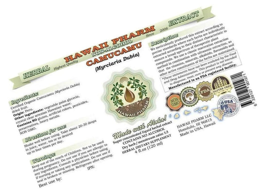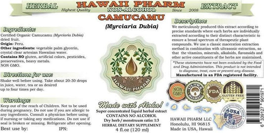 Camu Camu Alcohol-Free Liquid Extract, Camu Camu (Myrciaria Dubia) Dried Fruit Glycerite Hawaii Pharm Natural Herbal Supplement 2 oz