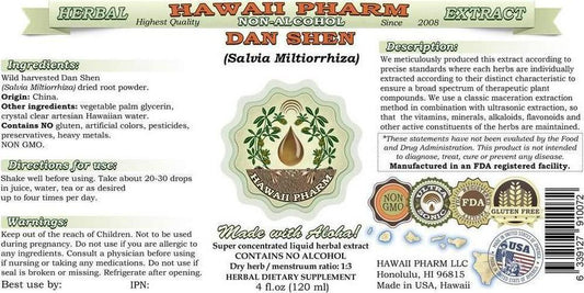Dan Shen Alcohol-Free Liquid Extract, Dan Shen, Salvia (Salvia Miltiorrhiza) Root Glycerite Hawaii Pharm Natural Herbal Supplement 2 oz