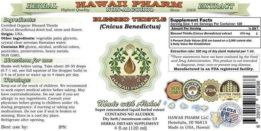 Blessed Thistle Alcohol-FREE Liquid Extract, Organic Blessed Thistle (Cnicus benedictus) Dried Leaf, Organic Stems and Flower Glycerite 2 oz