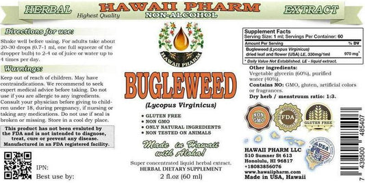 Bugleweed Alcohol-Free Liquid Extract, Organic Bugleweed (Lycopus Virginicus) Dried Leaf and Flower Glycerite Hawaii Pharm Natural Herbal Supplement 2 oz