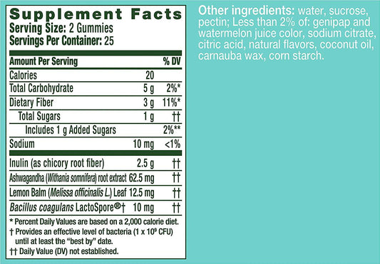 Align Probiotic, Digestive De-stress, Probiotic for Men and Women with Ashwagandha, Helps with a Healthy Response to Stress, Gluten Free, Soy Free, Vegetarian, 50 Gummies
