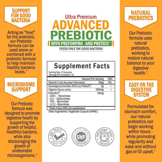 Bioschwartz Prebiotics for Advanced Gut Health - Immune System Support & Dietary Fiber - Promote Digestive Health - Gas & Digestion Support - Probiotics for Men & Women - 60 Capsules