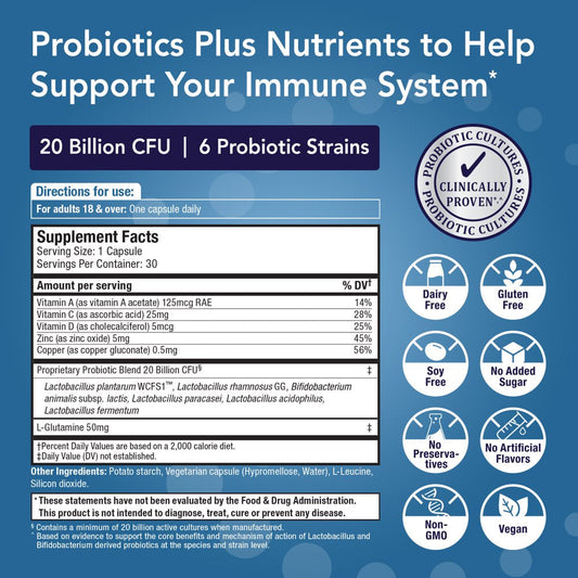 Bio-K + Daily Care Probiotic Supplement 30 Capsules for Adult Men and Women, 30 Billion Active Bacteria, Promotes Immune System & Intestinal Health -Feb24