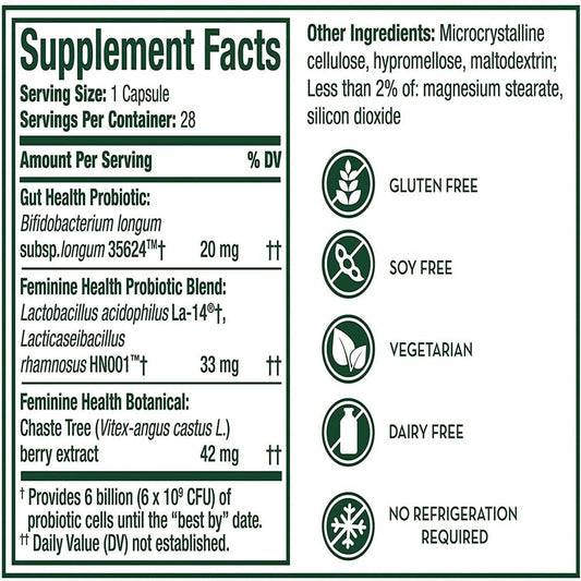 Align Probiotic, Women'S Dual Action, Supports Vaginal Health and Mood Balance, Feminine Health Probiotic with Chaste Tree, Soothe Occasional Abdominal Discomfort, Gas, Bloating, 28 Capsules