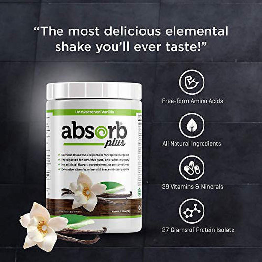 Absorb plus Isolate Protein - Diet Supplement for Improved Gut Health, Extra Nutritional Support, All Natural Ingredients, Non-Gmo, Gluten-Free, Lactose-Free, Casein-Free, Unsweetened Vanilla, 1Kg