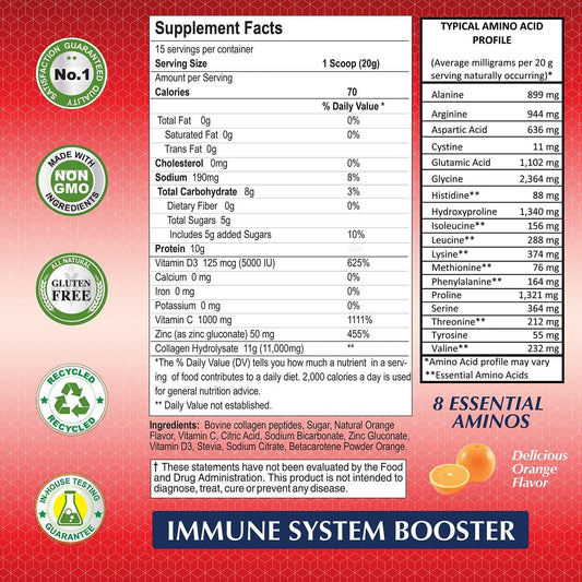 Alfa Vitamins SuperC Immune Powder Mix Formula with Vitamin C 1000mg, Collagen 11g, Vitamin D3 5000 IU, Zinc 50 mg - Orange Flavor 11oz
