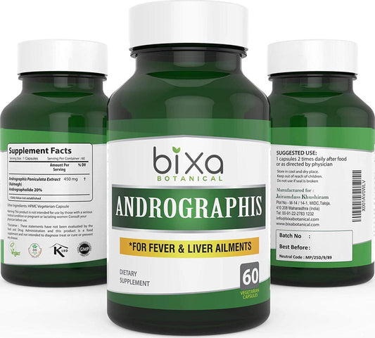 Andrographis Capsules with 20% Andrographolide Extract | 450Mg | | 60 Vegan Capsules | | Natural Bitters Liver Tonic ( Kalmegh Extract) | Herbal Supplement for Healthy Immunity & Liver.