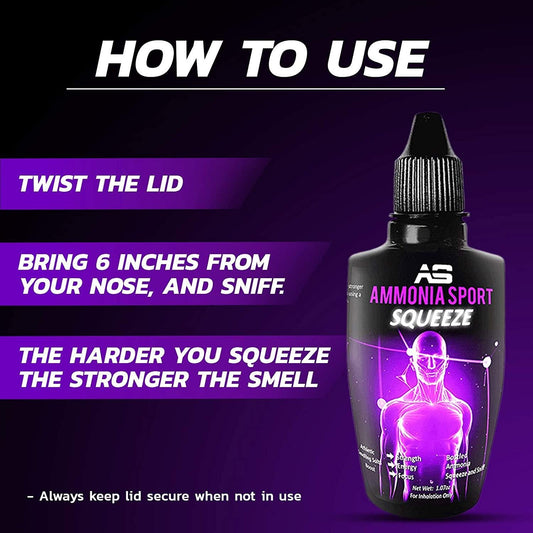 Athletic Smelling Salts - Squeeze - Squeeze and Sniff! 100's of Uses Per Bottle - SQUEEZE - Pre-Activated with 100's of Uses Per Bottle - Ammonia Inhalant - Adrenaline Supplement - by AmmoniaSport