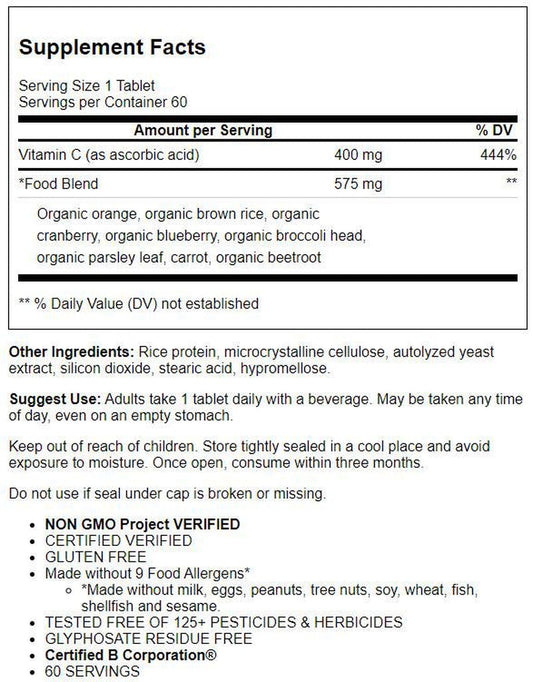 Megafood Ultra C-400 Mg - Immune Support Supplement and Support for Cellular Health with 400Mg Vitamin C plus Real Food - Vegan, Kosher, and Non-Gmo - Made without 9 Food Allergens - 90 Tabs