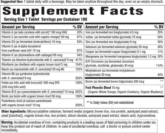 MegaFood One Daily - Multivitamin and Mineral Supplement with B Vitamins, Vitamin C, Real Food and Added Nutrients - Gluten-Free, Vegetarian, and Made without Dairy and Soy - 180 Tabs