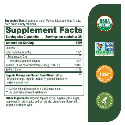 Megafood D3, Mixed Fruit, 50 Mcg (2,000 IU), 70 Gummies (25 Mcg (1,000 IU) per Gummy)