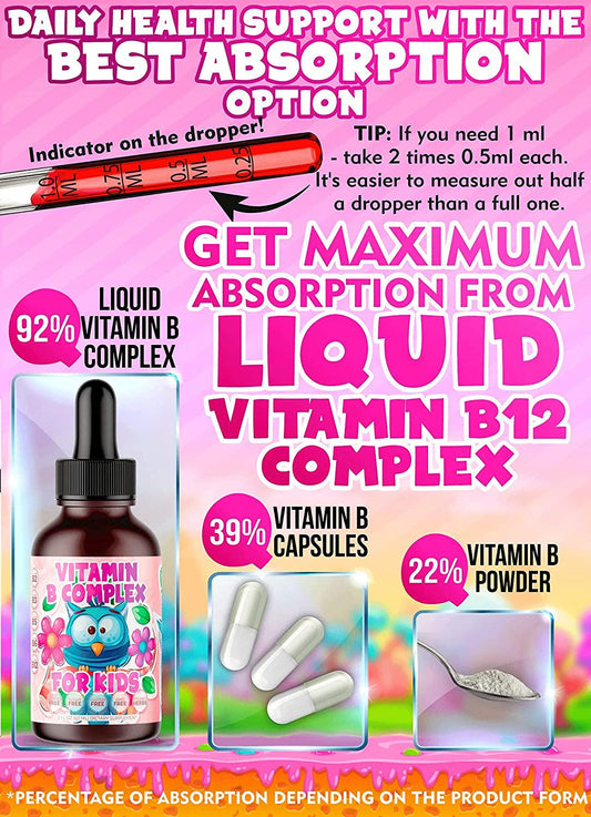 2-Pack Vitamin B-Complex for Kids Liquid Sublingual Vegan Drops - Premium Supplement Vitamins B b12 b6 b5 b3 and b2 - Fast Absorption Natural Energy Boost, Immune System and Mental Focus Support