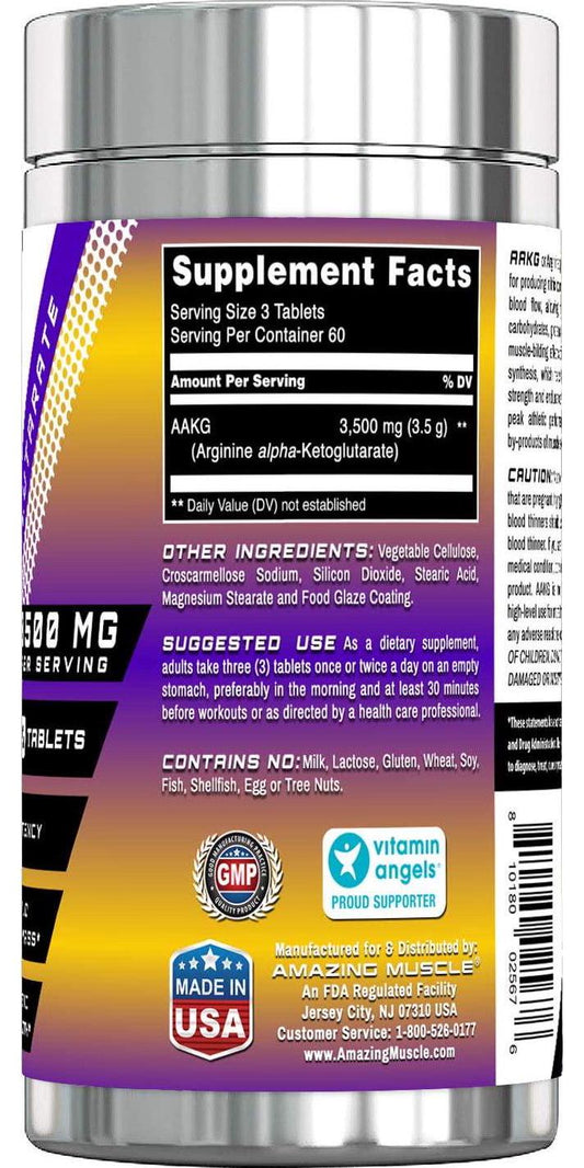 Amazing Muscle AAKG Arginine Alpha-Ketoglutarate 3500Mg 180 Tablets Supplement | 60 Servings | High Potency | Non GMO | Gluten Free | Made in USA