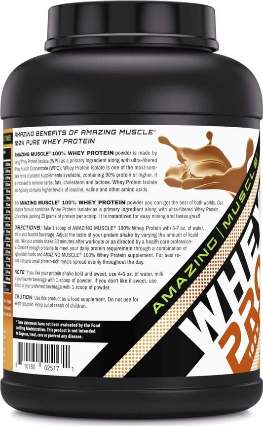 Amazing Muscle 100% Whey Protein Powder * 5 Lbs *Advanced Formula with Whey Protein Isolate as a Primary Ingredient Along with Ultra Filtered Whey Protein Concentrate * Supports Lean Muscle Growth