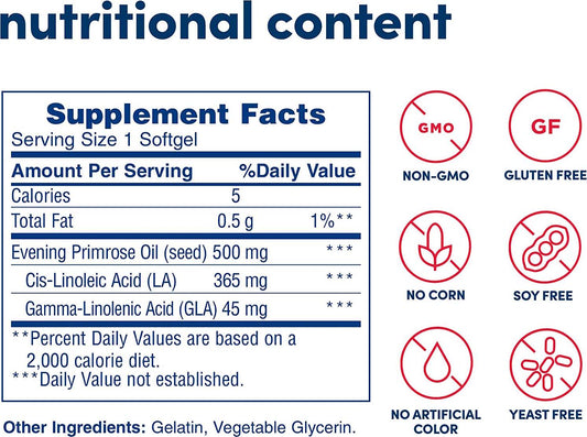 American Health Dietary Fiber Supplement Softgels, Evening Primrose Oil, 500 mg, 100 Count