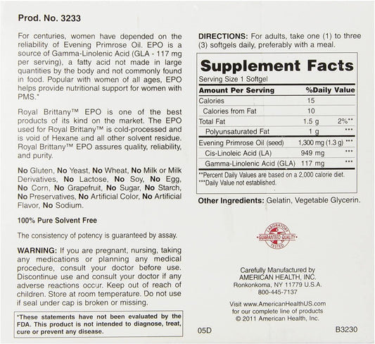American Health - Royal Brittany Evening Primrose Oil Super Potency (120 + 120) Twin Pack Special 1300 mg. - 240 Softgels
