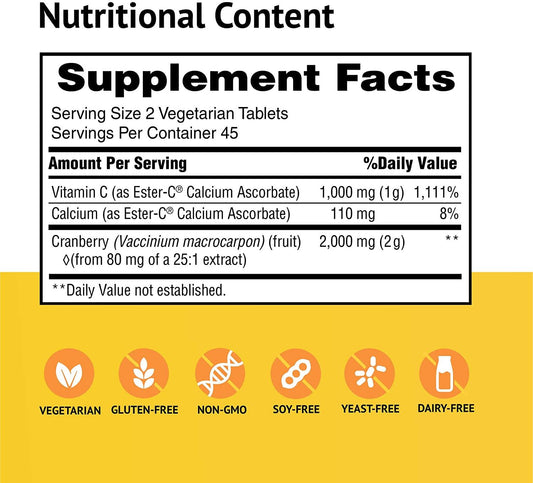 American Health Ester-C Cranberry, Cranberry and Immune Health Complex, 90 Tablets