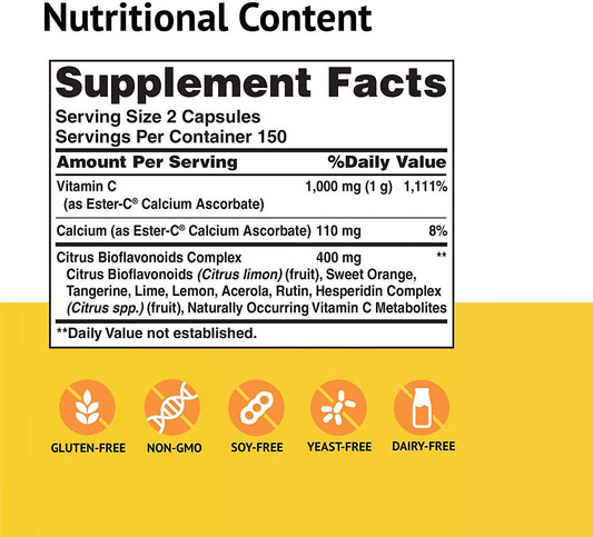 American Health Ester-C 500 mg with Citrus Bioflavonoids Capsules, 300 Count