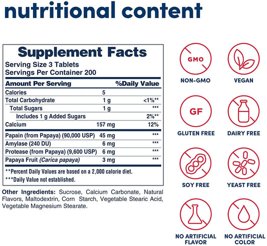 American Health Super Papaya Plus Digestive Enzyme Chewable Tablets, Natural Papaya Flavor - Helps with Digestion and Nutrient Absorption, Contains Papain and Other Enzymes - 360 Count, 120 Total Servings