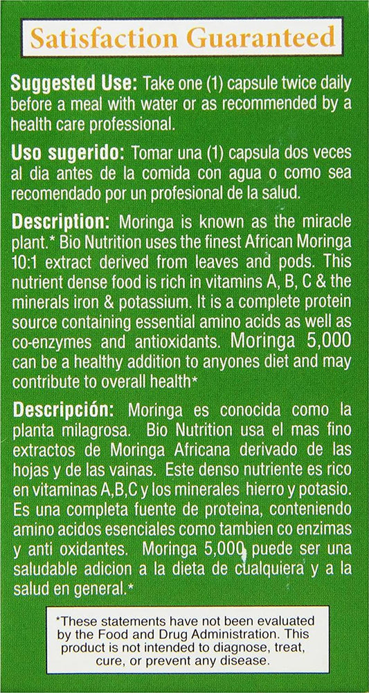 Bio Nutrition Moringa Super Food Vegi-Caps, 60 Count, 5,000 mg
