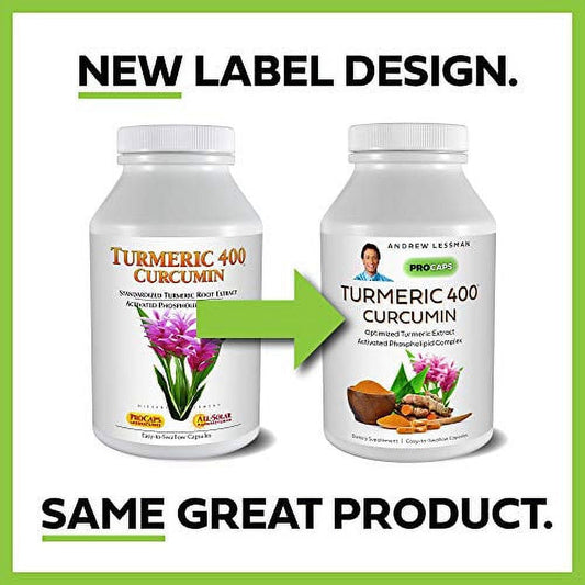 ANDREW LESSMAN Turmeric 400 - 30 Capsules €“ 95% Curcuminoids as Phospholipid Complex for Optimum Benefits and Greater Absorption, High Potency Standardized Extract, Small Easy to Swallow Capsul